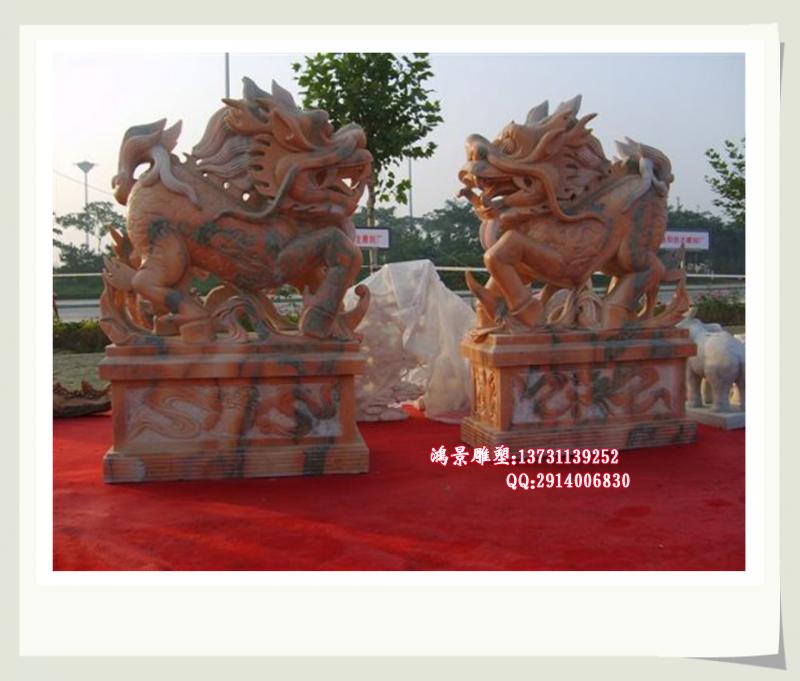 石麒麟 晚霞紅麒麟 鴻景石雕廠家
